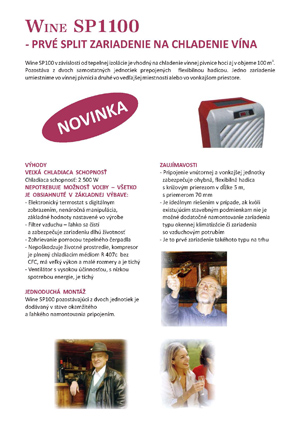 Klimatizácie WineMaster® SP100 / SP100-8 sú určené pre vaše pivnice až do 100m3. Umožňujú výnimočný výkon a zároveň šetria energiu vďaka technológii WineMaster.
